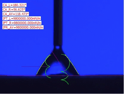 Due to surface roughness, chemical diversity and heterogeneity of the surface of fiber, we will not use contact angle goniometer with circle, ellipse or tangent method, or Young-Laplace Equation fitting method, because circle ftting, ellipse fitting and tangent method is just a geometric value of goniometer and has nothing to do with the surface chemistry. And the measured value by these method has no repeatability and Comparability. So, only contact angle meter with Young-Laplace equation fitting method is real contact angle meter. But the biggest flaw of Young-Laplace equation fitting method and ADSA-P is that it cannot be used to measure contact angle of nonaxisymmetric drop shape. Now, only ADSA-RealDrop method can measure nonaxisymmetrical drop shape and calculate the intrinsic contact angle.