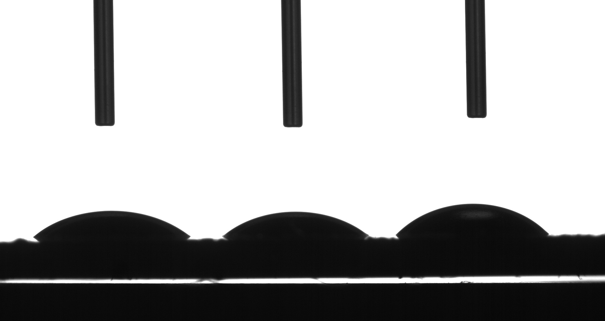 Original image of three drops for measuring Surface Free Energy based on Acid Base method at once and one time